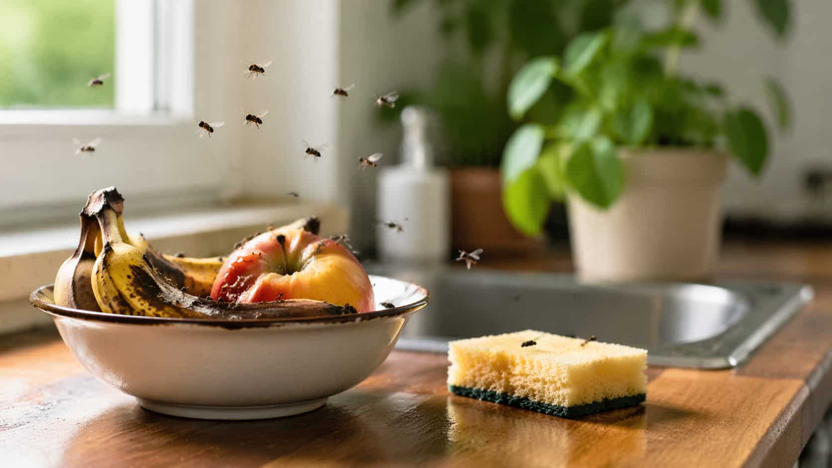 Pour dire adieu aux drosophiles et sciarides, retenez l’essentiel : asséchez vos terreaux, nettoyez vos siphons au bicarbonate et placez des pièges au vinaigre.